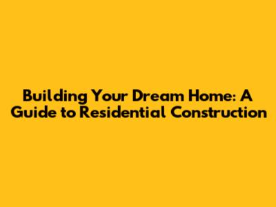 Building Your Dream Home: A Guide To Residential Construction