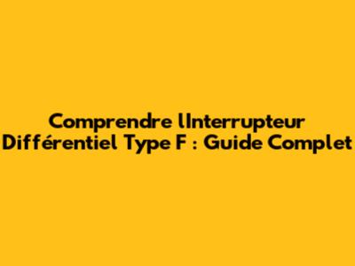 Comprendre L'Interrupteur Différentiel Type F : Guide Complet