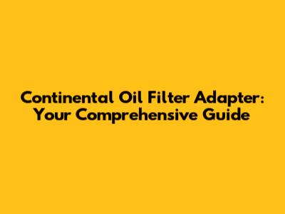 Continental Oil Filter Adapter: Everything You Need To Know