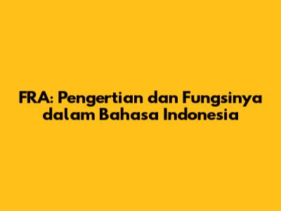 FRA: Pengertian Dan Fungsinya Dalam Bahasa Indonesia