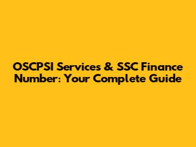 OSCPSI Services & SSC Finance Number: Your Complete Guide