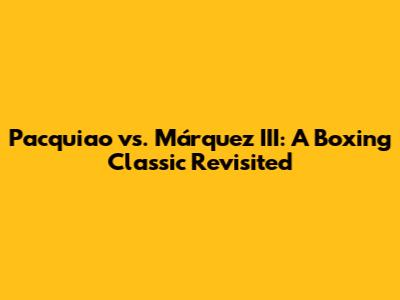 Pacquiao Vs. Márquez III: A Boxing Classic Revisited