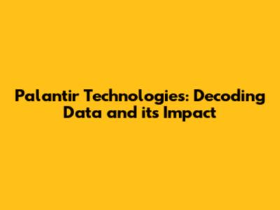 Palantir Technologies: Decoding Data And Its Impact