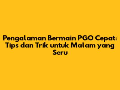 Pengalaman Bermain PGO Cepat: Tips Dan Trik Untuk Malam Yang Seru