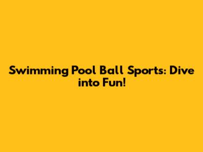 Swimming Pool Ball Sports: Dive Into Fun!