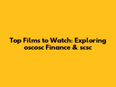 Top Films To Watch: Exploring Oscosc Finance & Scsc