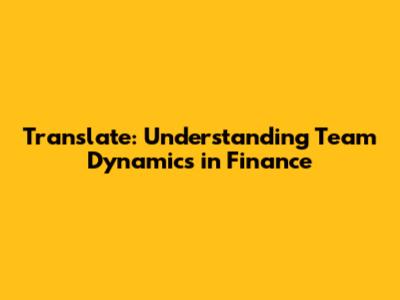 Translate: Understanding Team Dynamics In Finance